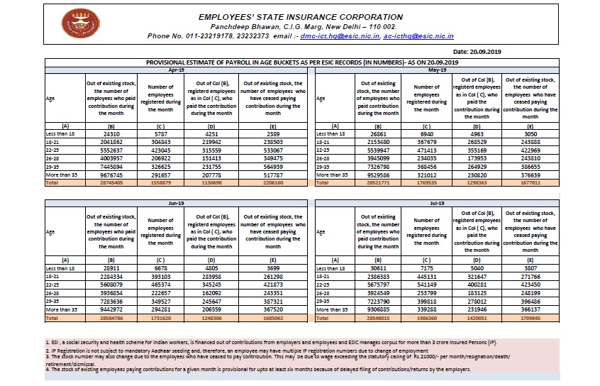 PROVISIONAL ESTIMATE OF PAYROLL IN AGE BUCKETS AS PER ESIC RECORDS (IN NUMBERS)- AS ON 20.06.2019 size:(488.84 KB)