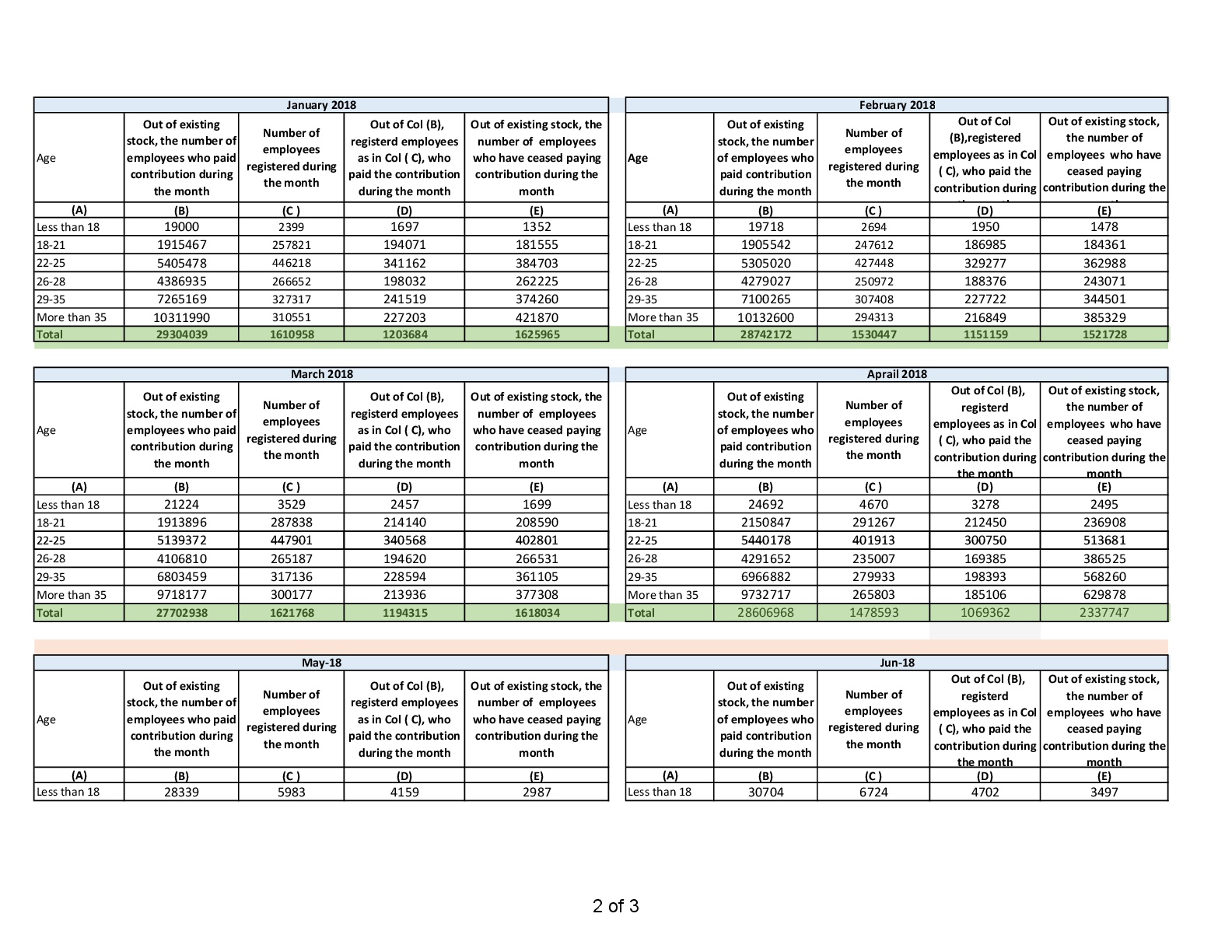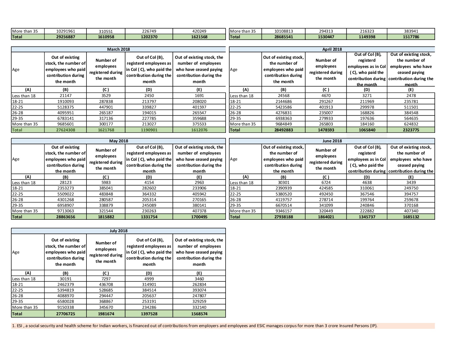 PROVISIONAL ESTIMATE OF PAYROLL IN AGE BUCKETS AS PER ESIC RECORDS (IN NUMBERS) dated 20/6/2018 size:(180.76 KB)